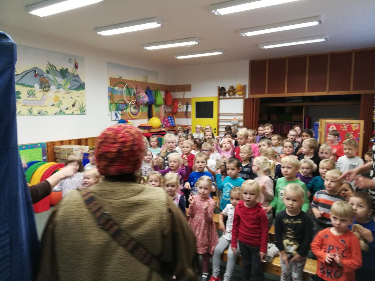 Ve středu 21.9.2022 přijela do školky návštěva. Přivítali jsme divadélko Jójo s "Pohádkou ze psí boudy".