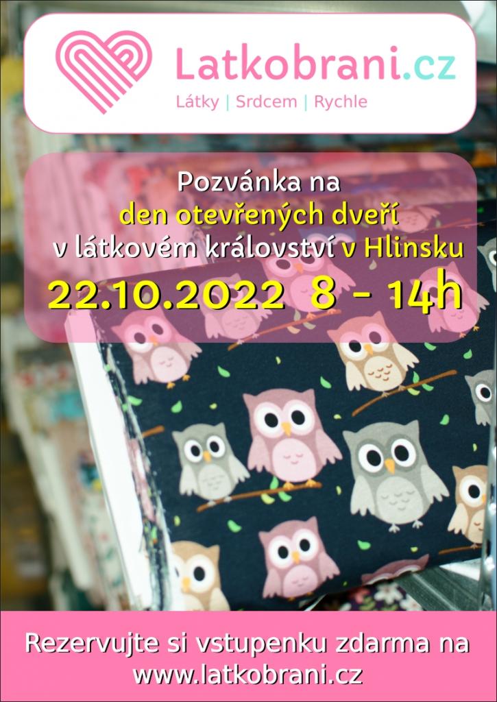 Srdečně Vás zveme v sobotu 22. října 2022 od 8:00 - 14:00 hodin na "Den otevřených dveří" v látkovém království www.latkobrani.cz.