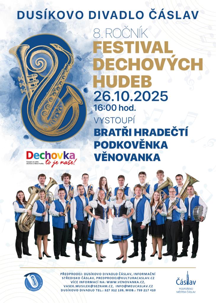 Pozvánka na 8.ročník festivalu DH v Čáslavi. Festival se koná dne 26. října od 16 hodin v Dusíkově divadle v Čáslavi. Na festivalu vystoupí Bratři Hradečtí, Podkověnka a Věnovanka.