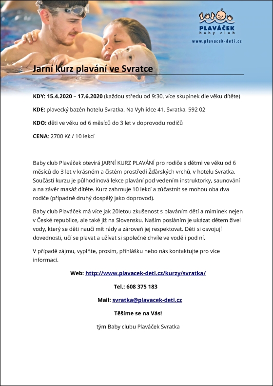 JARNÍ KURZ PLAVÁNÍ VE SVRATCE