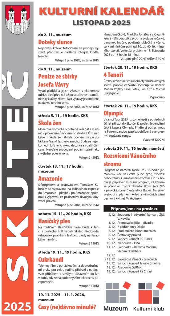 Město Skuteč vás srdečně zve na kulturní akce, které se konají v průběhu listopadu.