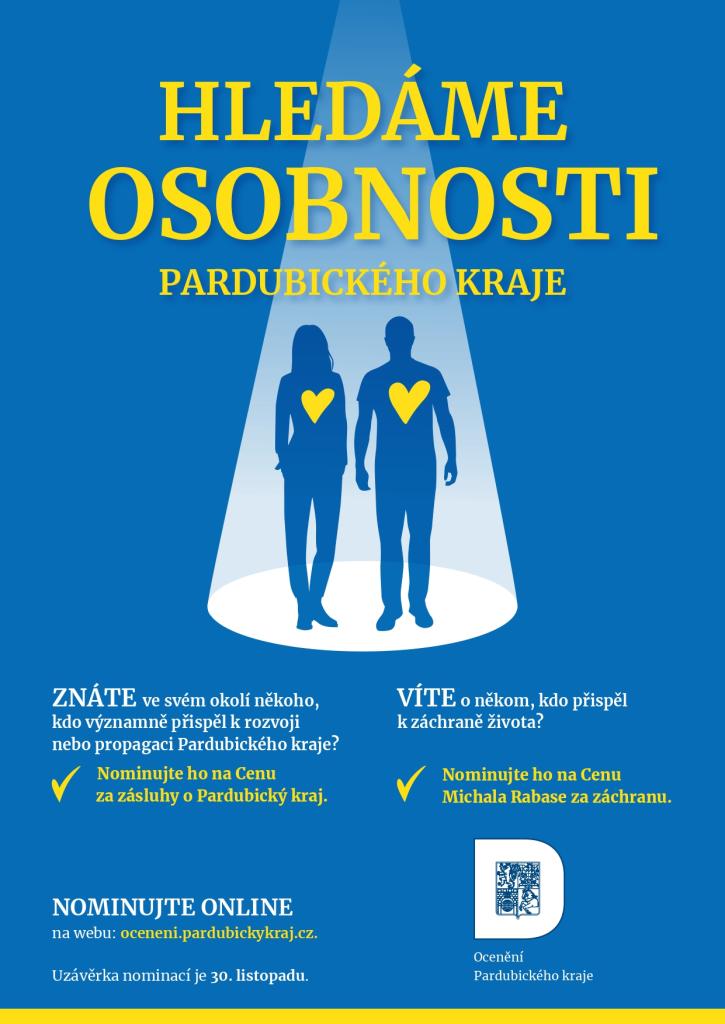 Pardubický kraj si Vás dovoluje informovat, že do 30. listopadu máte možnost nominovat významné osobnosti z Pardubického kraje, které si podle Vašeho názoru zasluhují získat jedno ze dvou nejvyšších regionálních vyznamenání, a sice Cenu za zásluhy o Pardubický kraj nebo Cenu Michala Rabase za záchranu.