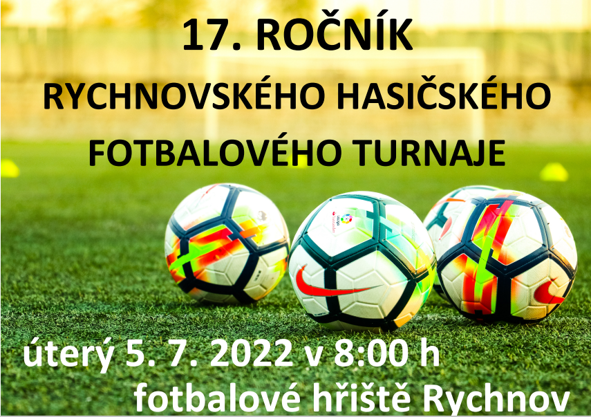 SDH Rychnov Vás srdečně zve na 17. ročník Rychnovského hasičského fotbalového turnaje, který se bude konat tradičně na svátek v úterý 5.7.2022.