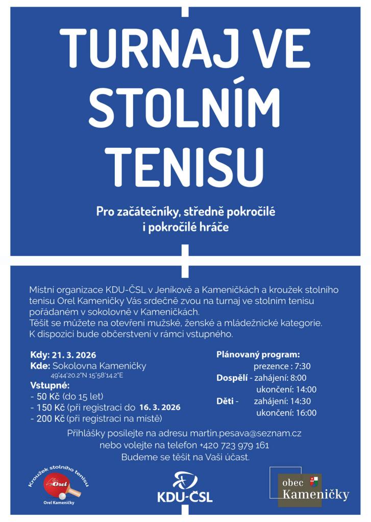 Turnaj ve stolním tenisu Kameničky