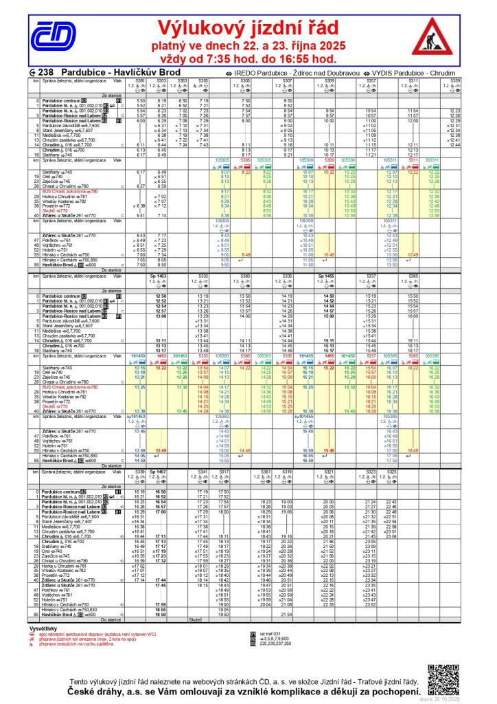 Výluky vlaků Chrast u Chrudimi - Žďárec u Skutče