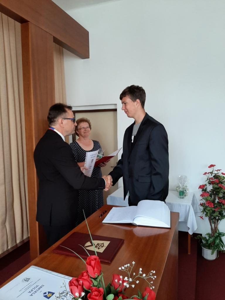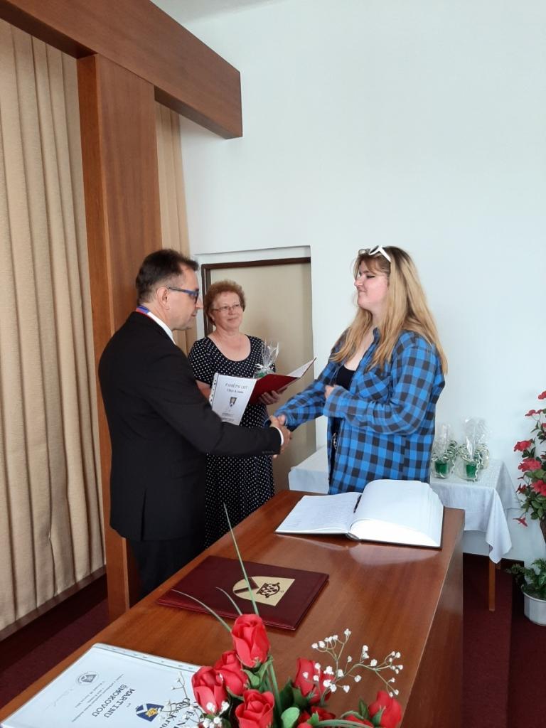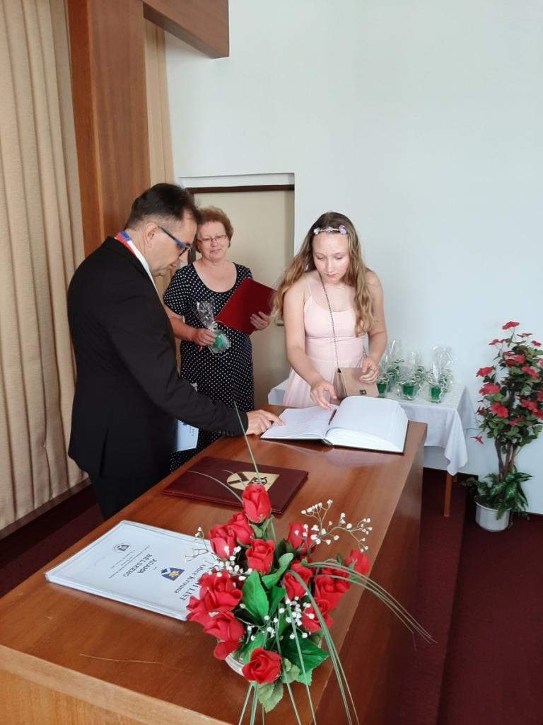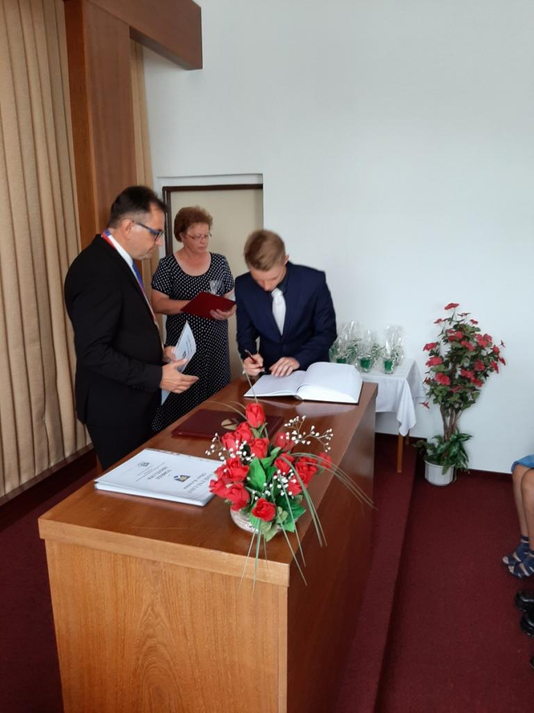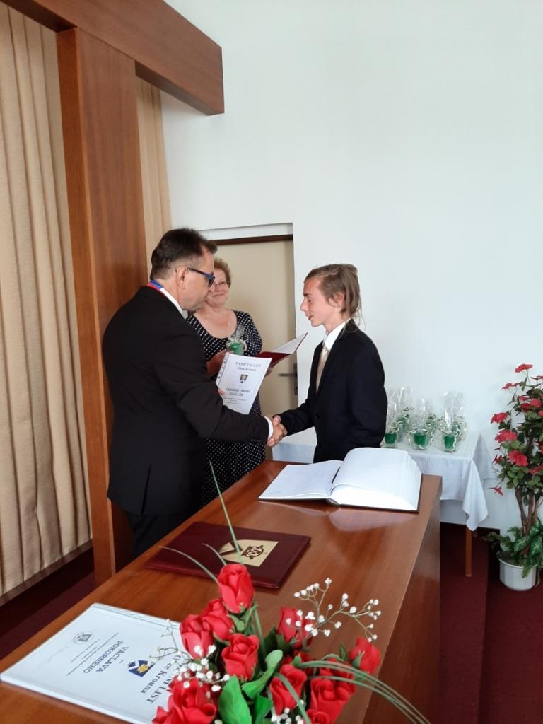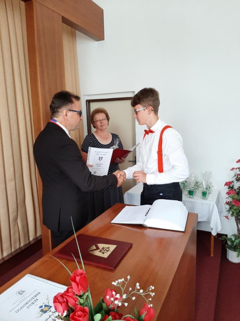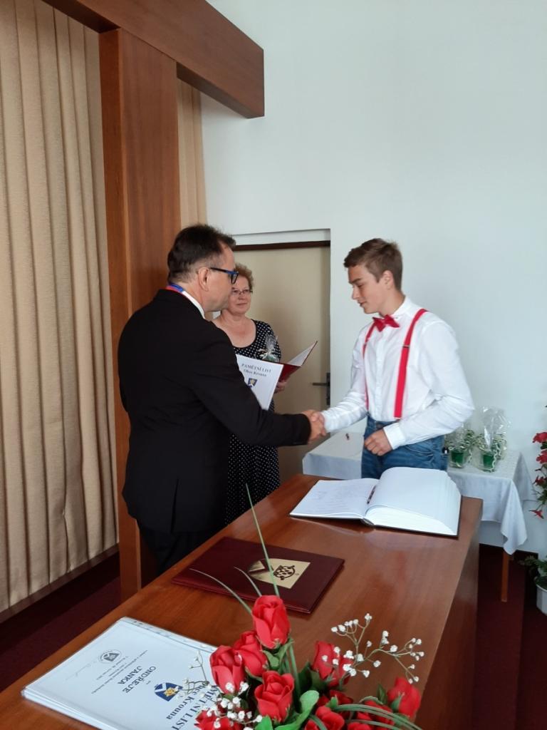 Přijetí vycházejících žáků u starosty obce, Foto: Mgr. Kyncl Josef, ředitel školy