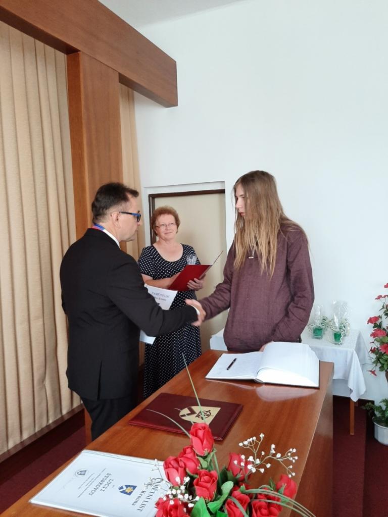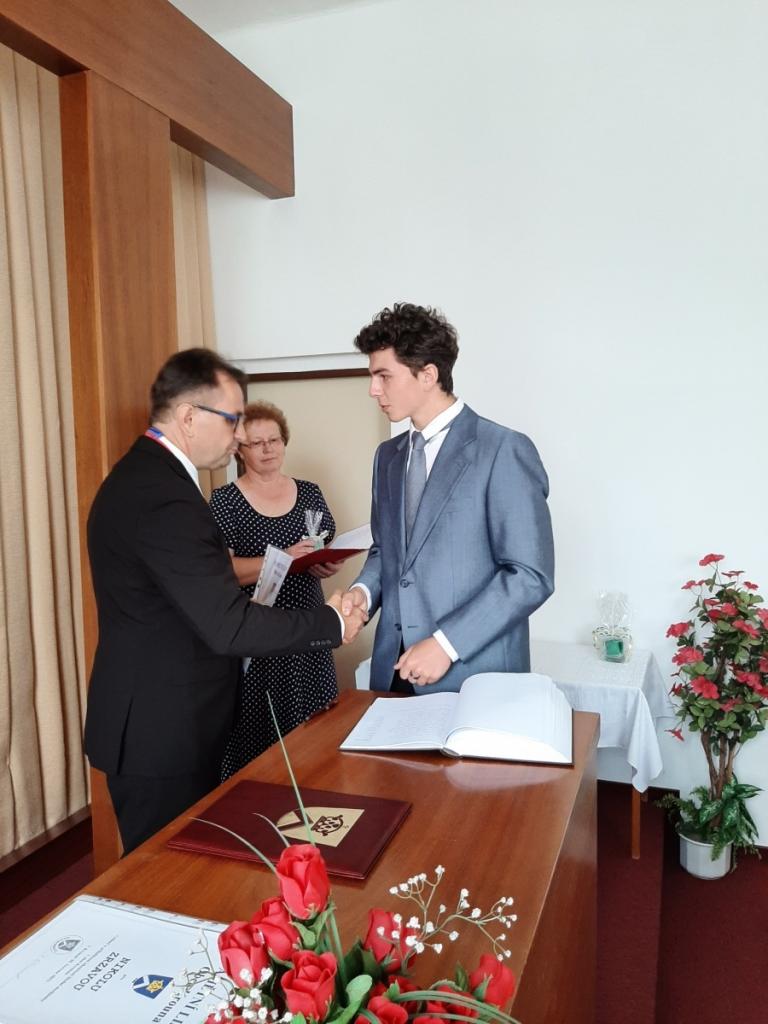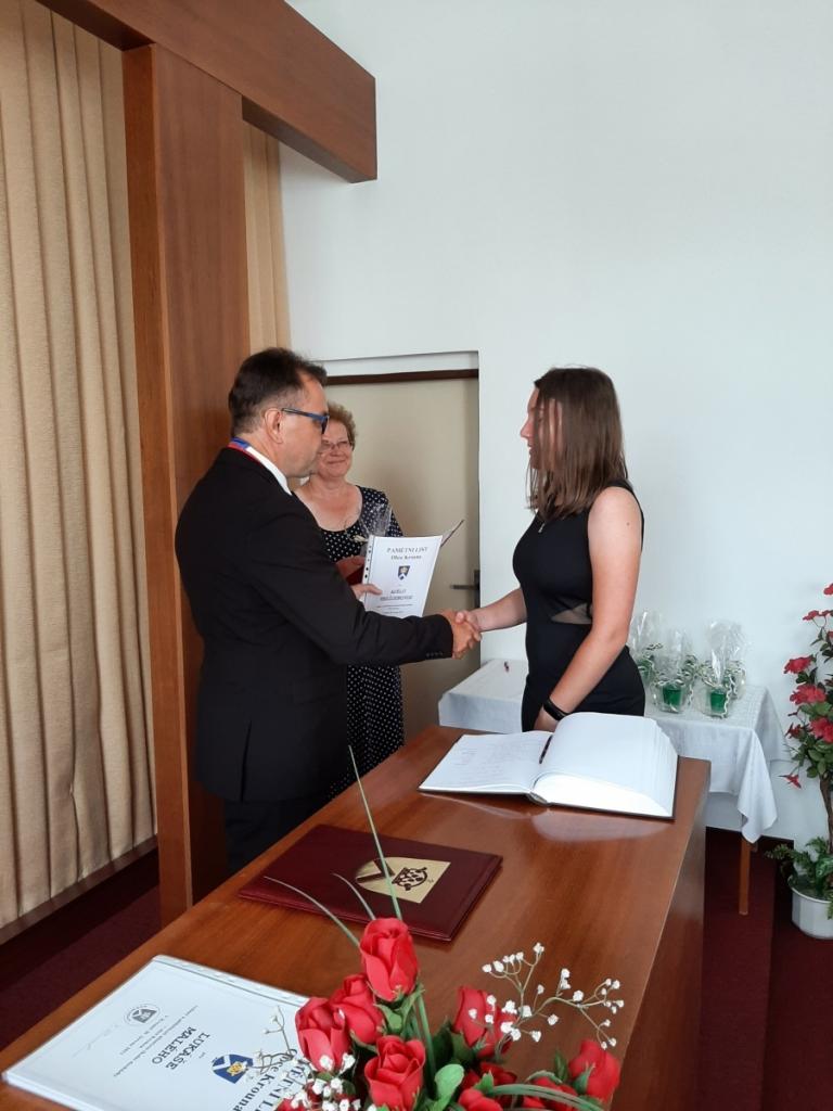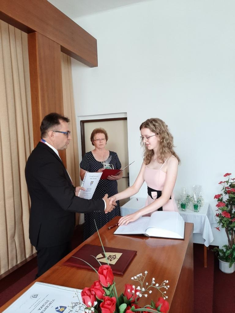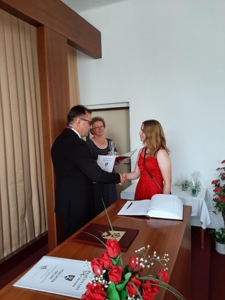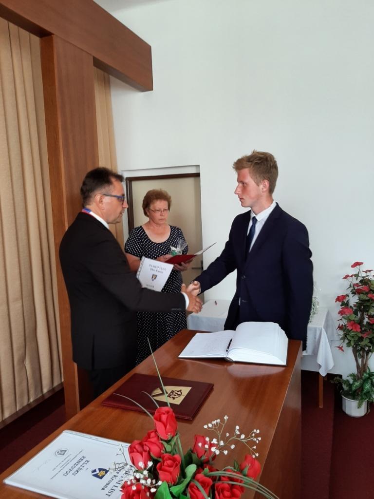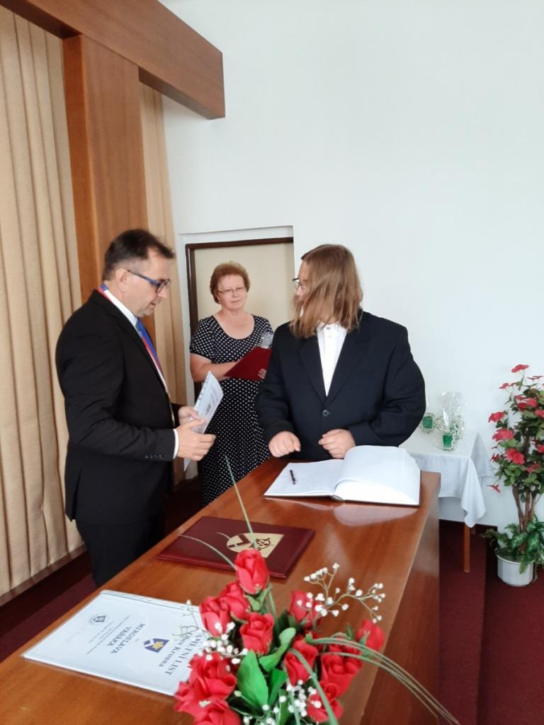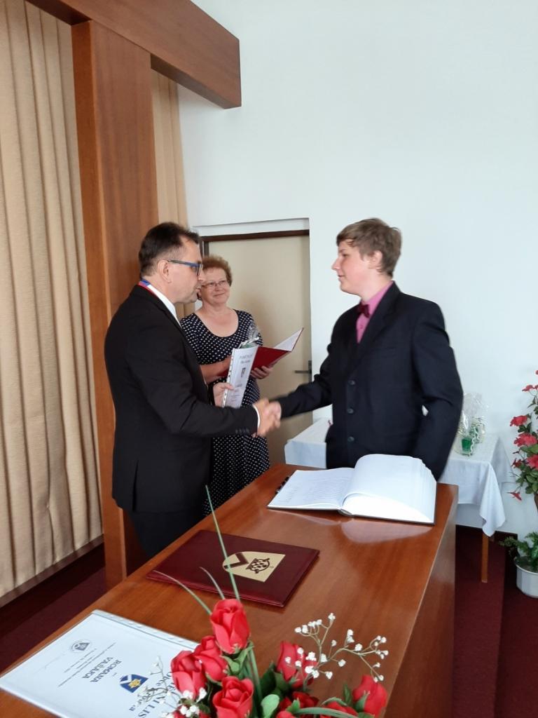 Přijetí vycházejících žáků u starosty obce, Foto: Mgr. Kyncl Josef, ředitel školy