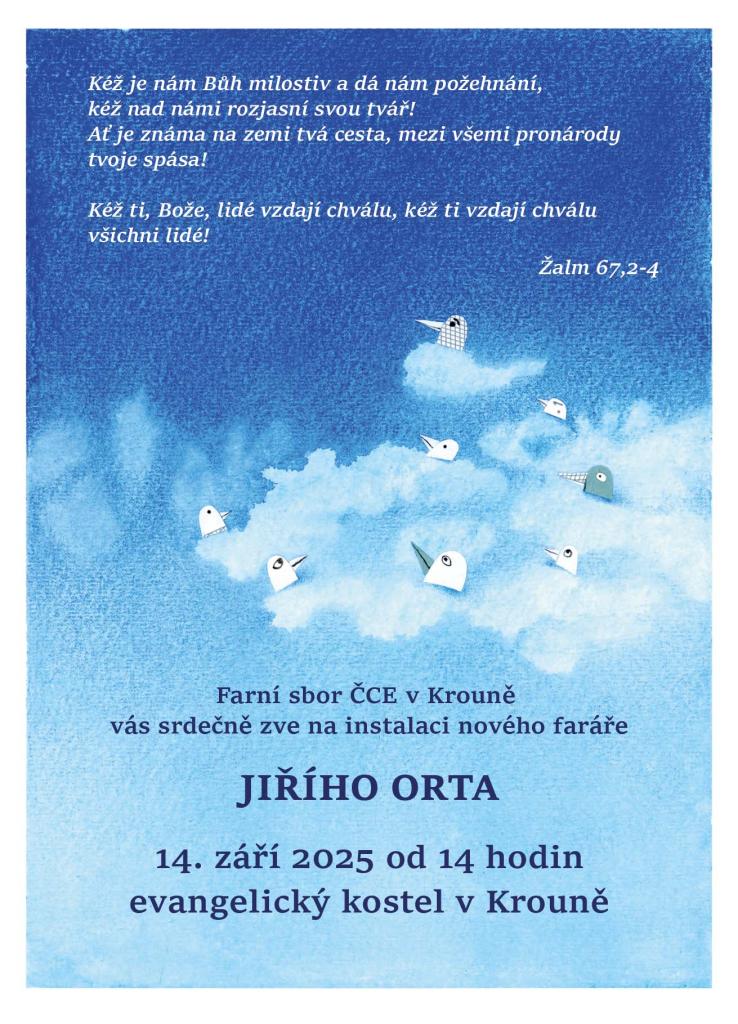 Farní sbor Českobratrské církve evangelické v Krouně pořádá slavnostní událost, při které dojde k instalaci nového faráře Jiřího Orta. Událost se koná 14. září od 14 hodin v evangelickém kostele. Všichni jsou srdečně zváni.